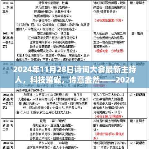 随着科技的飞速发展,我们的生活不断被高科技产品所革新,在即将到来的2024年诗词大会中,全新亮相的智能主持人将再次定义科技与文化的融合,引领科技爱好者们领略科技与生活的无限魅力,就让我们一起走进这场科技与诗意的盛宴,感受最新智能主持人的独特魅力。